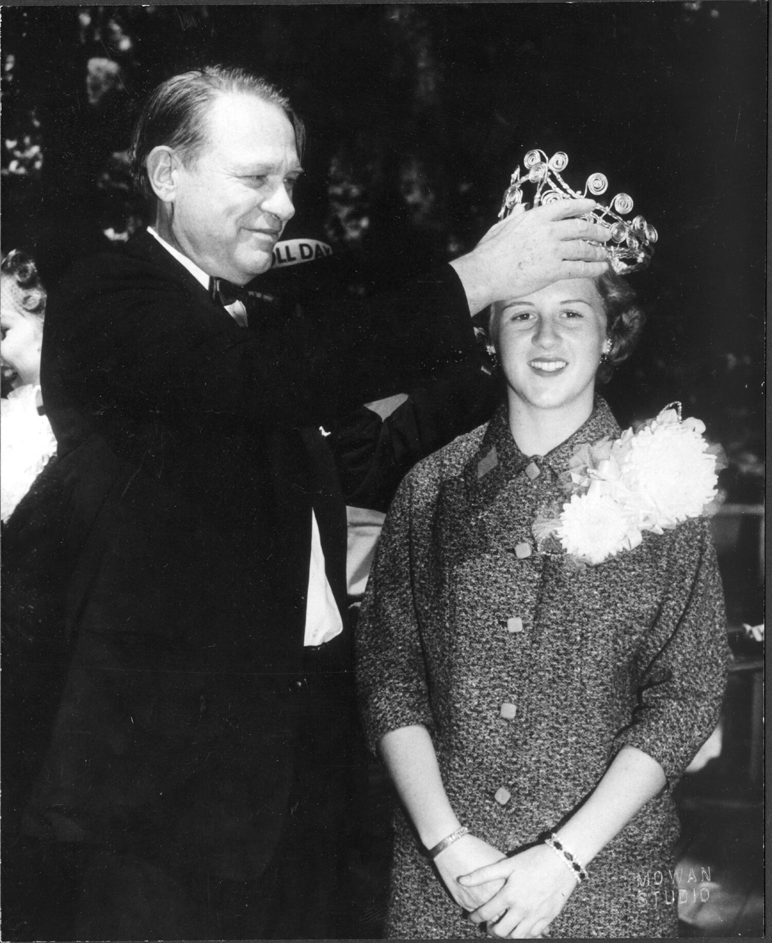 1958: Diboll Day Queen Alice Rains. Candidates not pictured were Vela Stivers, Nell Burchfield, and Betty Hannah. Alice Rains Ashworth donated to The History Center the 1958 crown, which was made by Rose Ellen Saxton and Rhoda Faye Chandler and was worn by some earlier queens.