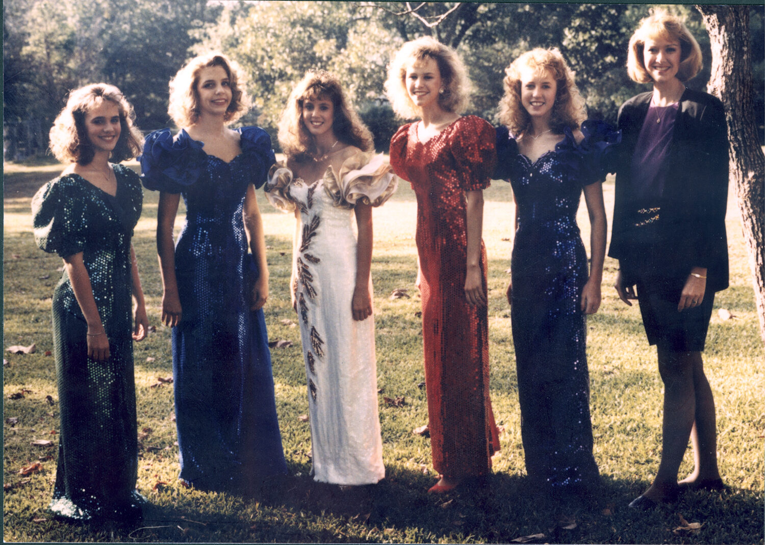 1974: Left to right are 1974's contestants Suzanne Baskette, Charlotte Harrison, Kaye Murry, Flossy Eddins, Theresa Weatherford, and Dora Huizar. Theresa Weatherford was crowned Queen. Kaye Murry's daughter, Chaney Wyatt, was a contestant in 2004.