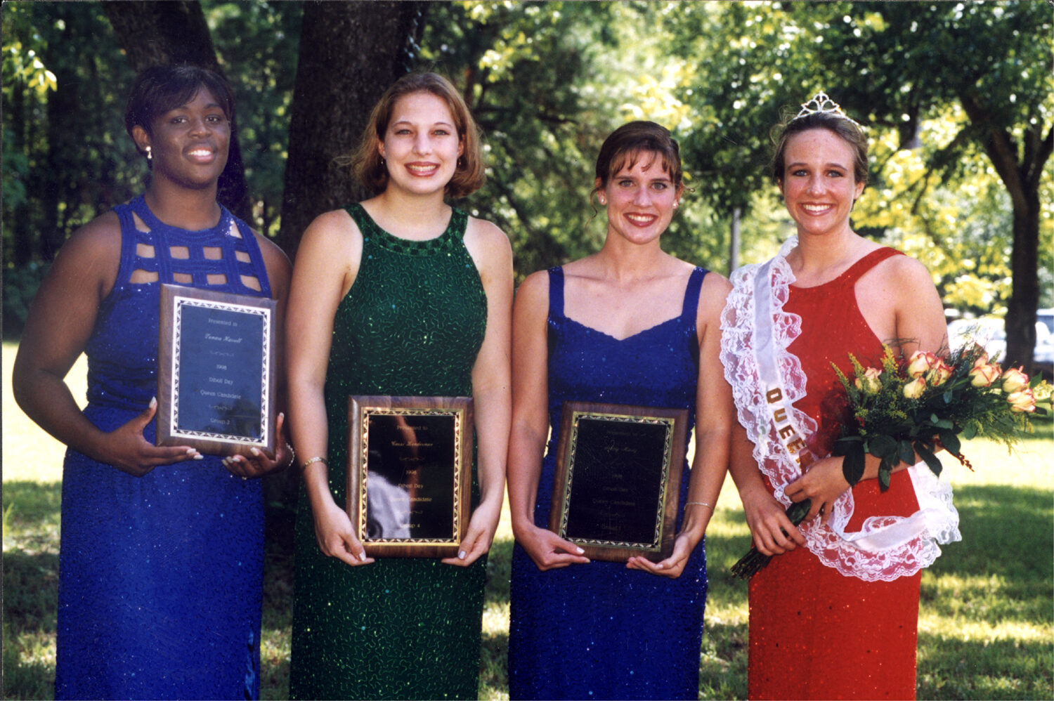 1996: Diboll Day Queen candidates (left to right): Katherina Loftin, Ashley Lenderman, Jessica Tipton, and Misty Jones. Ashley Lenderman received the crown. Her sister, Cassi, was a candidate in 1998.